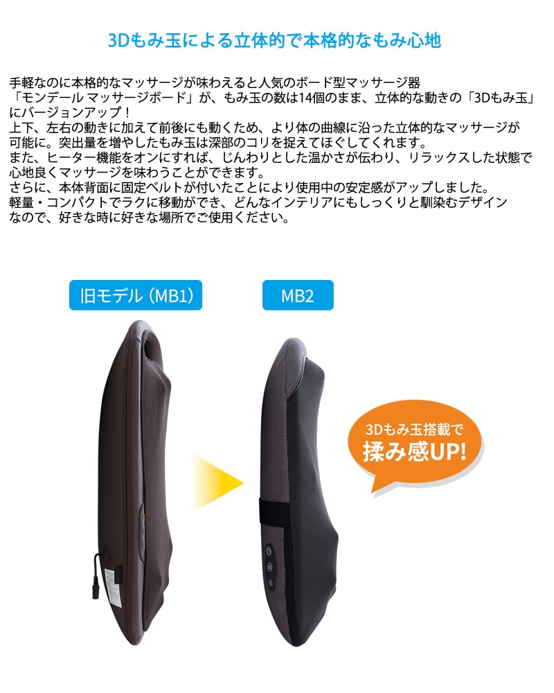 【管理医療機器】モンデール マッサージボード MB2 マッサージ器 マッサージ 3D もみ玉 軽量 コンパクト ヒーター 電動