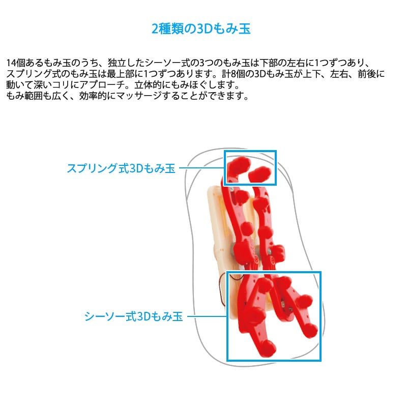 突出量を増やしたもみ玉は深部のコリを捉えてほぐしてくれます。