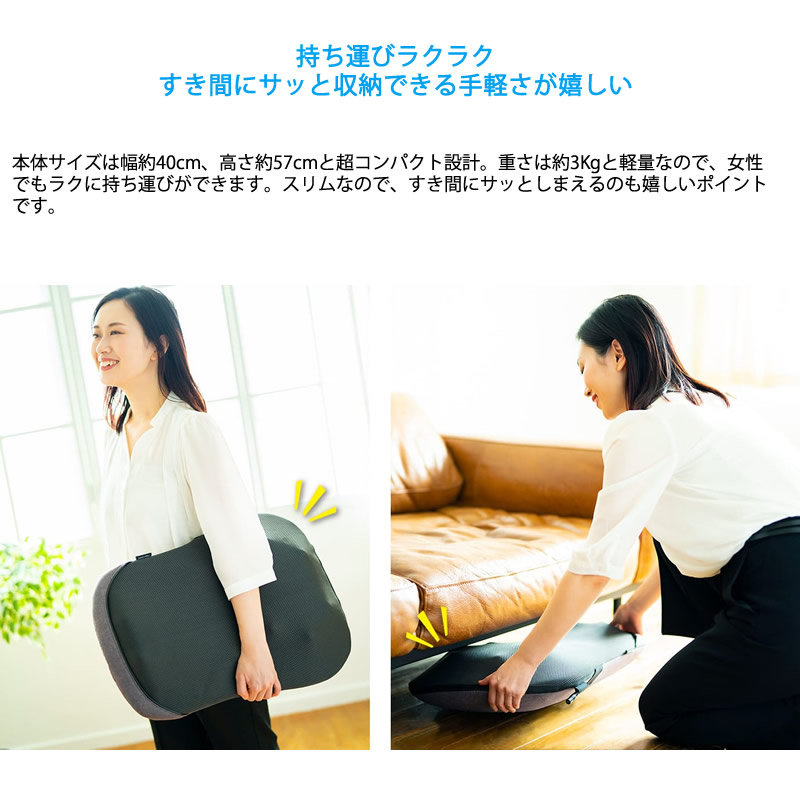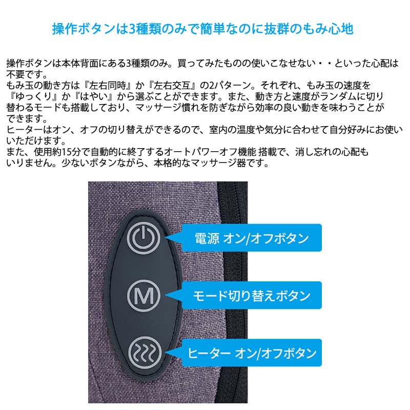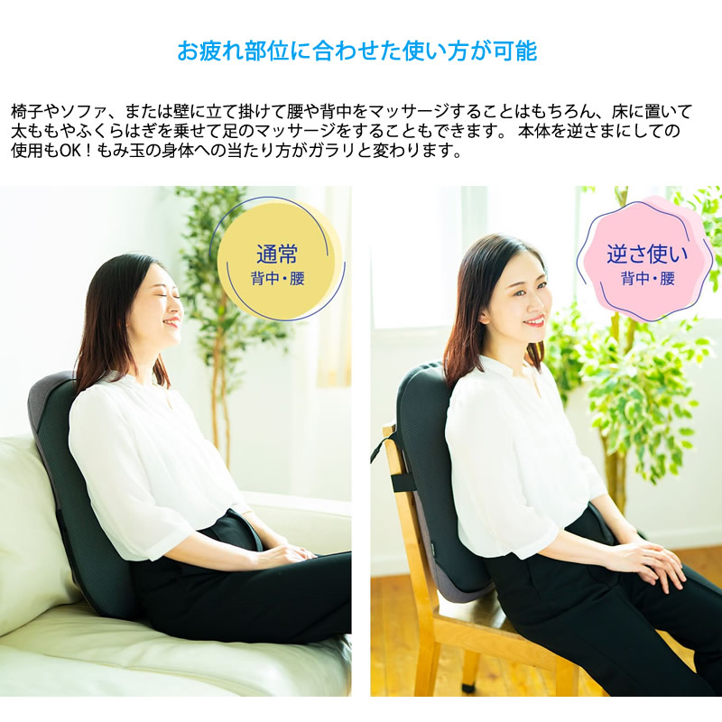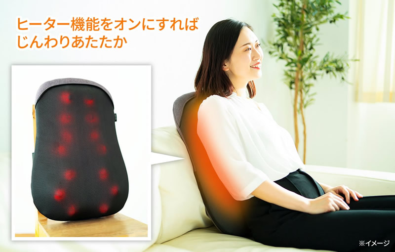 また、ヒーター機能をオンにすれば、じんわりとした温かさが伝わり、リラックスした状態で心地良くマッサージを味わうことができます。