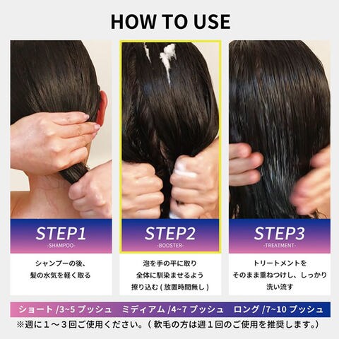 2.泡が馴染んだらそのまま洗い流さずにトリートメントを重ねづけしてください。