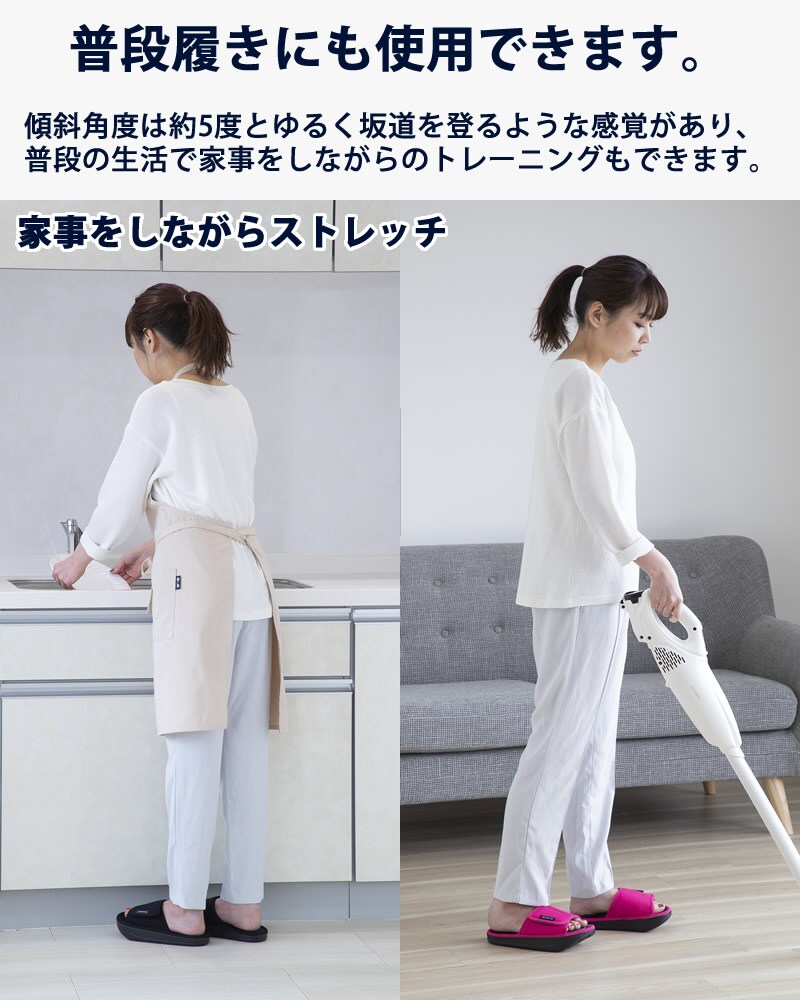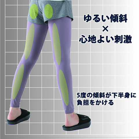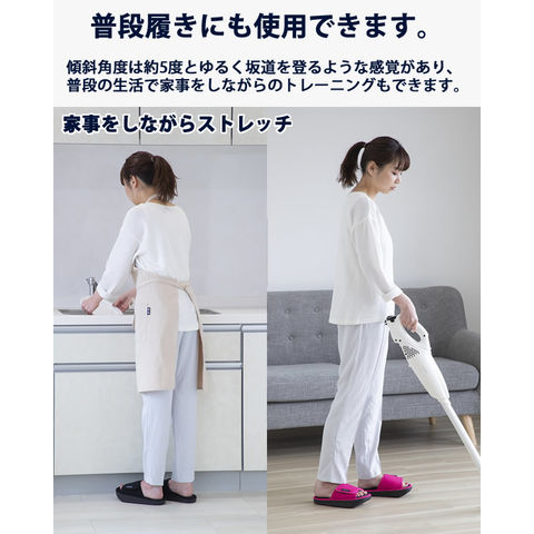 傾斜角度が約5度と緩いため普段履きスリッパとして使用する事ができます。