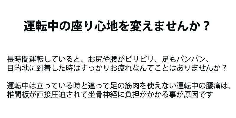 人間工学に基づき通常の椅子用に開発されたものを車の運転用に改良。