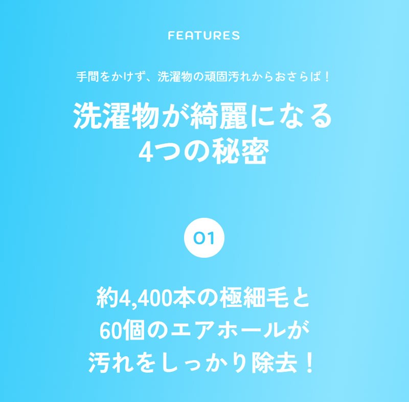 柔らかい4400本ものシリコン極細毛 、数千個のマイクロシリコンブラシが洗濯物を叩きこすります。