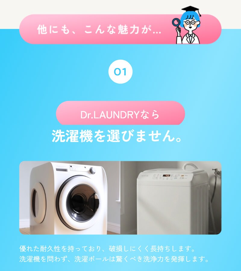 お手入れもとっても簡単。どんな洗濯機にも使えます。縦式洗濯機にもドラム式にもOK!