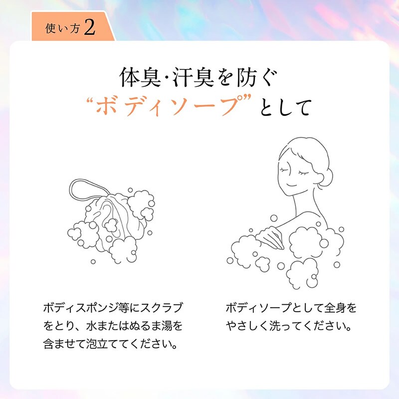 泡立てることでボディソープ、デリケートゾーン用ソープとしてもお使い頂けます。