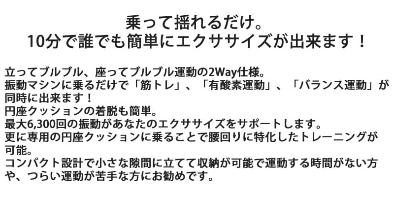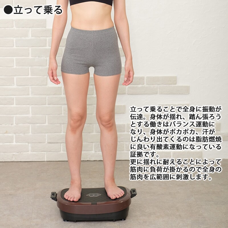 振動マシンに乗るだけで「筋トレ」、「有酸素運動」、「バランス運動」が同時に出来ます!
