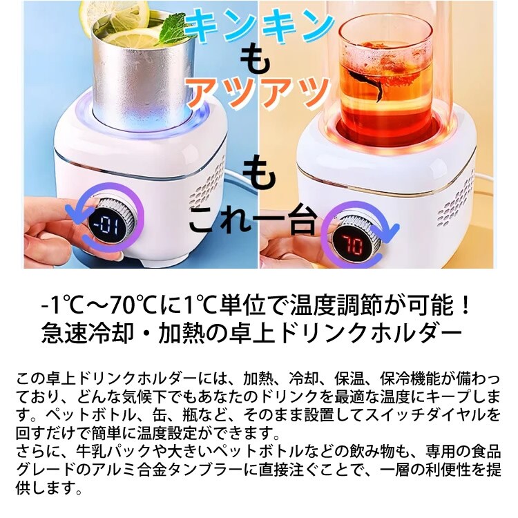 卓上ドリンクホルダー 急速冷却 保冷 保温 加熱 卓上 ドリンクホルダー 冷蔵庫 タンブラー ビール 日本酒 アイスコーヒー ラテ ドリンク