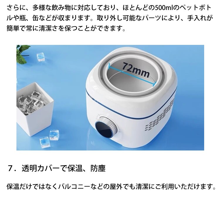 ペットボトル、缶、瓶など、そのまま設置してスイッチダイヤルを回すだけで簡単に温度設定ができます。