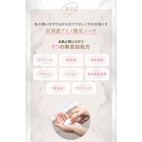 低刺激のアミノ酸系ソープだからやさしく洗い上げます。もちろん全身にもお使いいただけます。
