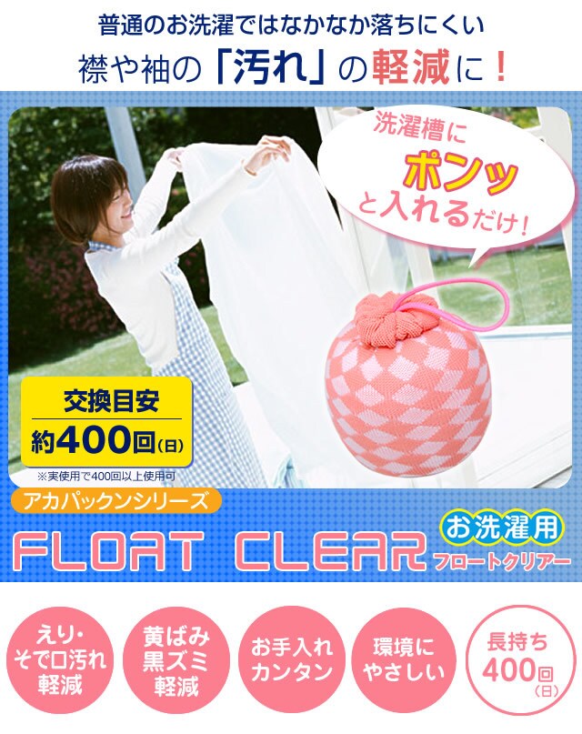 フロートクリアー お洗濯用 (PP簡易包装) アカパックンシリーズ 洗たく 洗濯 黄ばみ 黒ずみ 襟汚れ 油脂 掃除 グッズ アイテム