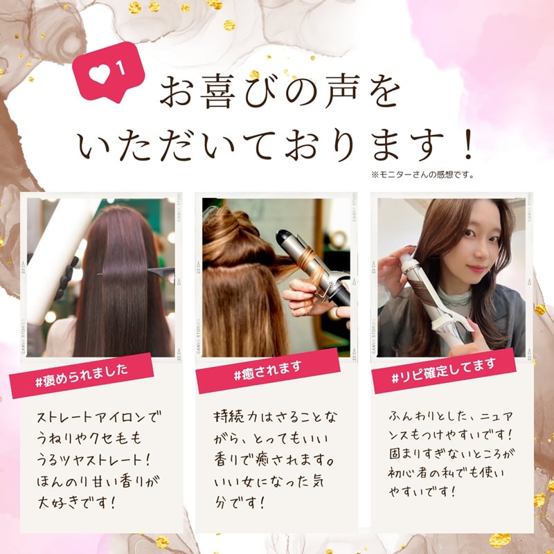 ヘアアイロンの使用によるダメージから髪をしっかりガードし、しっとりとした質感をキープします。