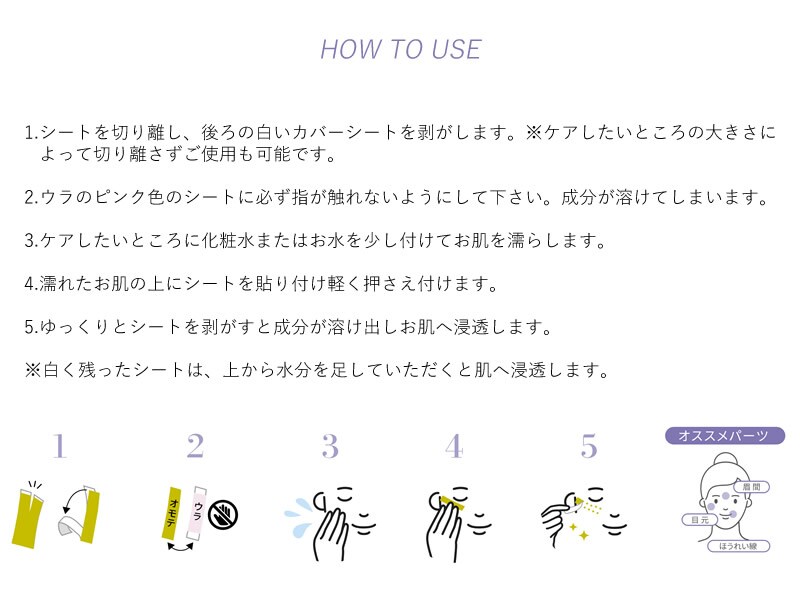 ※白く残ったシートは、上から水分を足していただくと肌へ浸透します。
