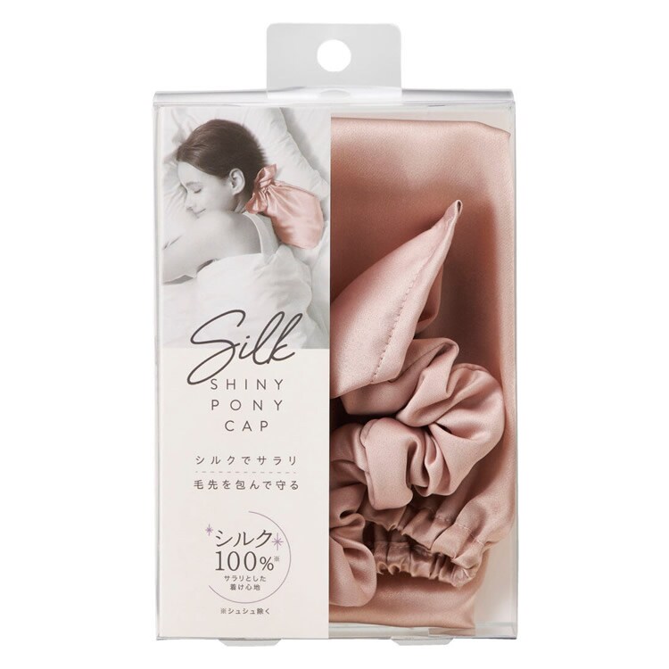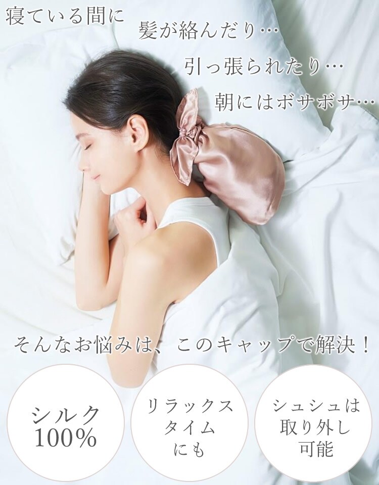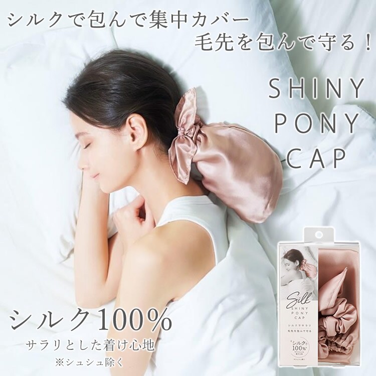 シルクシャイニーポニーキャップ シルク ナイトキャップ シュシュ ヘアケア 可愛い 摩擦対策 静電気 保湿