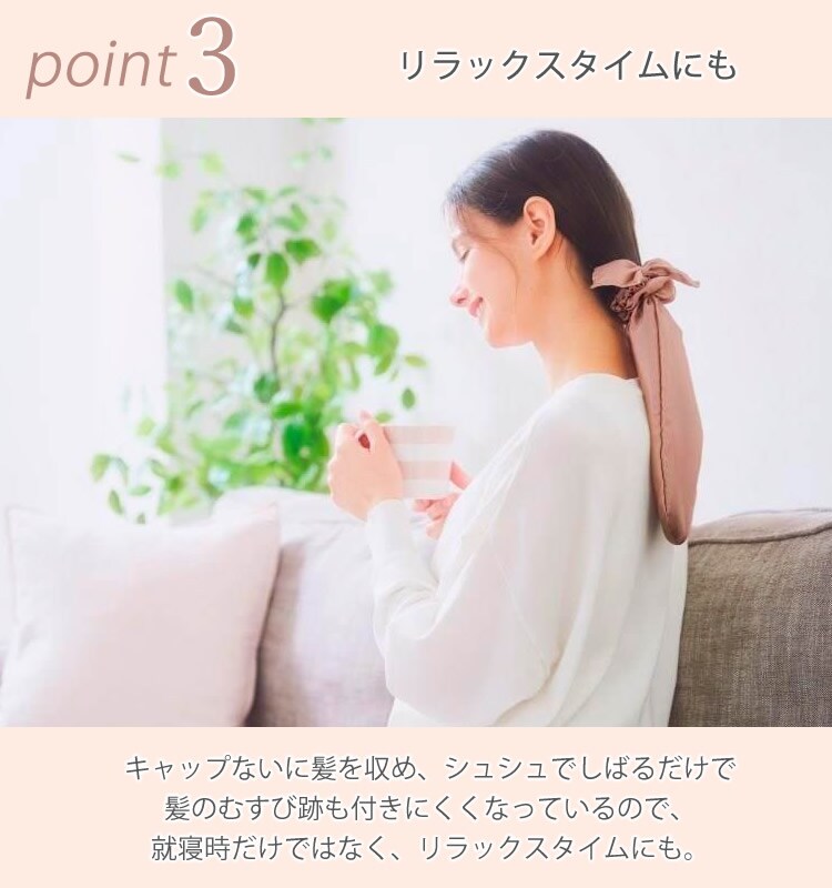 そんな睡眠中の摩擦や乾燥から毛先だけを包み込んでやさしく守ります。