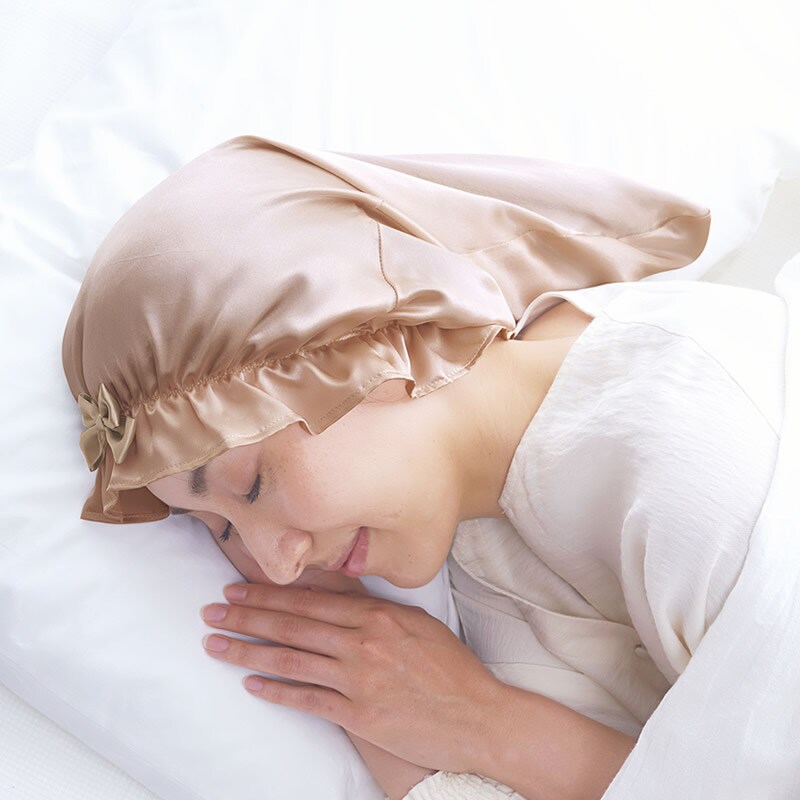 シルクシャイニーナイトキャップ forロング シルク ナイトキャップ ヘアケア 可愛い 摩擦対策 乾燥 静電気 保湿