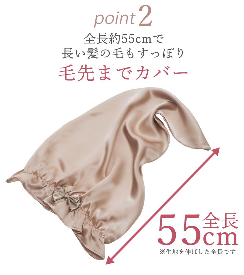 ロングタイプは全長約55cmで長い髪の毛もすっぽり毛先までカバー!