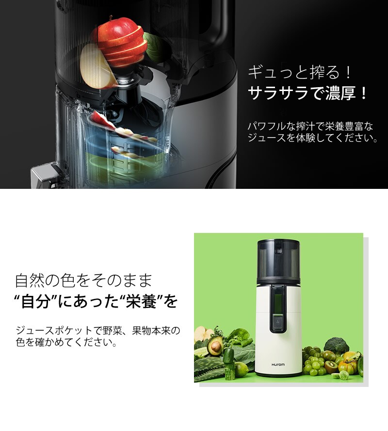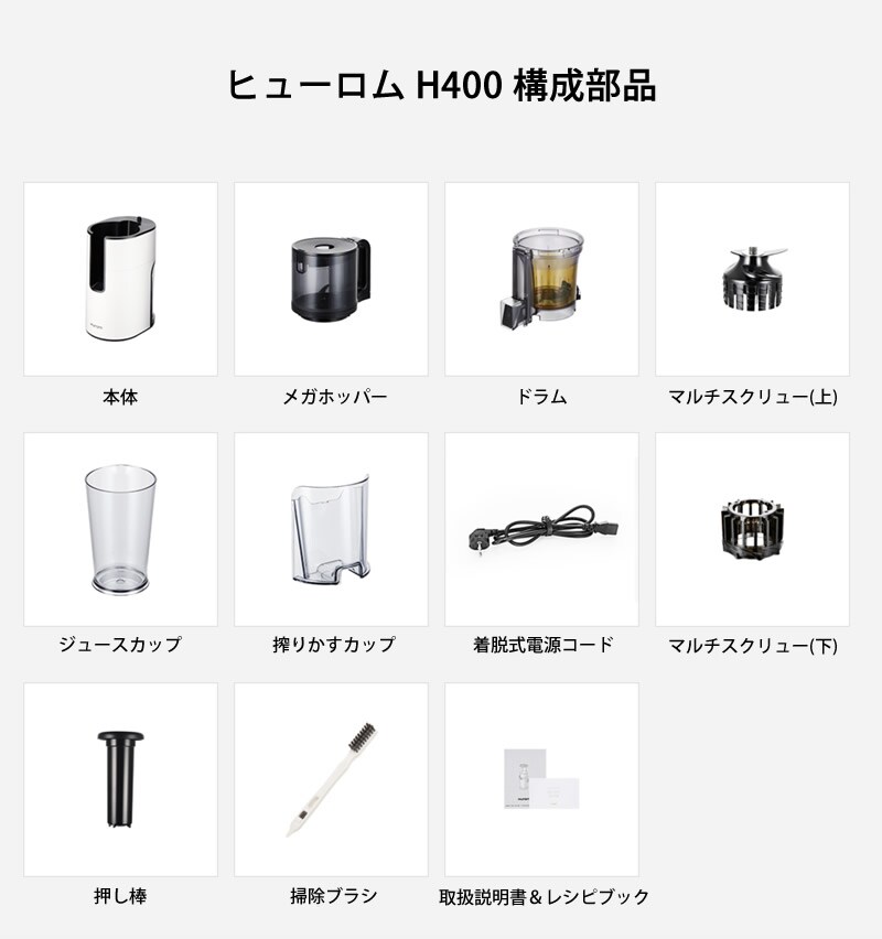 ヒューロム スロージューサー H400 低速ジューサー 野菜ジュース 人参ジュース トマトジュース コールドプレス オートカッティング 搾汁 無添加 ジュース 野菜