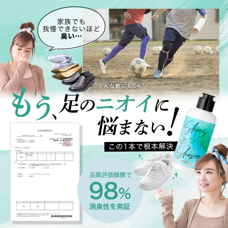 シューズシャワー Shoes Shower 消臭パウダー 靴専用 フットケア 革靴 スニーカー ブーツ 消臭 ミョウバン 銀 緑茶 サリチル酸 靴 足用