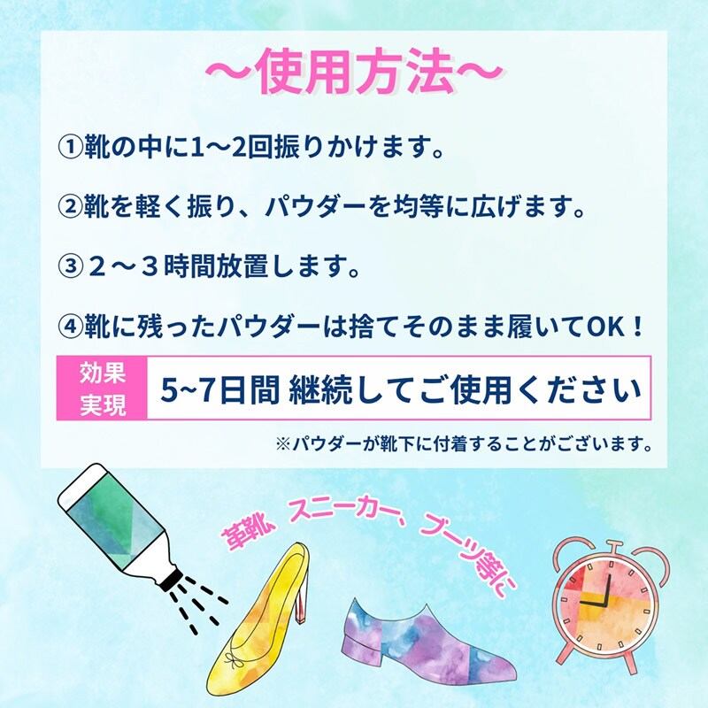 シューズシャワー Shoes Shower 消臭パウダー 靴専用 フットケア 革靴 スニーカー ブーツ 消臭 ミョウバン 銀 緑茶 サリチル酸 靴 足用のレビュー
