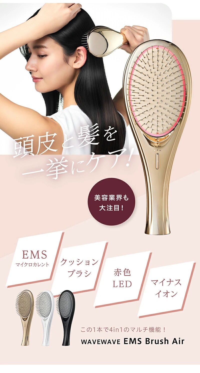 WAVEWAVE EMS ブラシエアー クッションブラシ EMS ヘアブラシ 光エステ クシ くし ブラッシング 頭皮ケア マッサージ 静電気 Brush air マイクロカレント