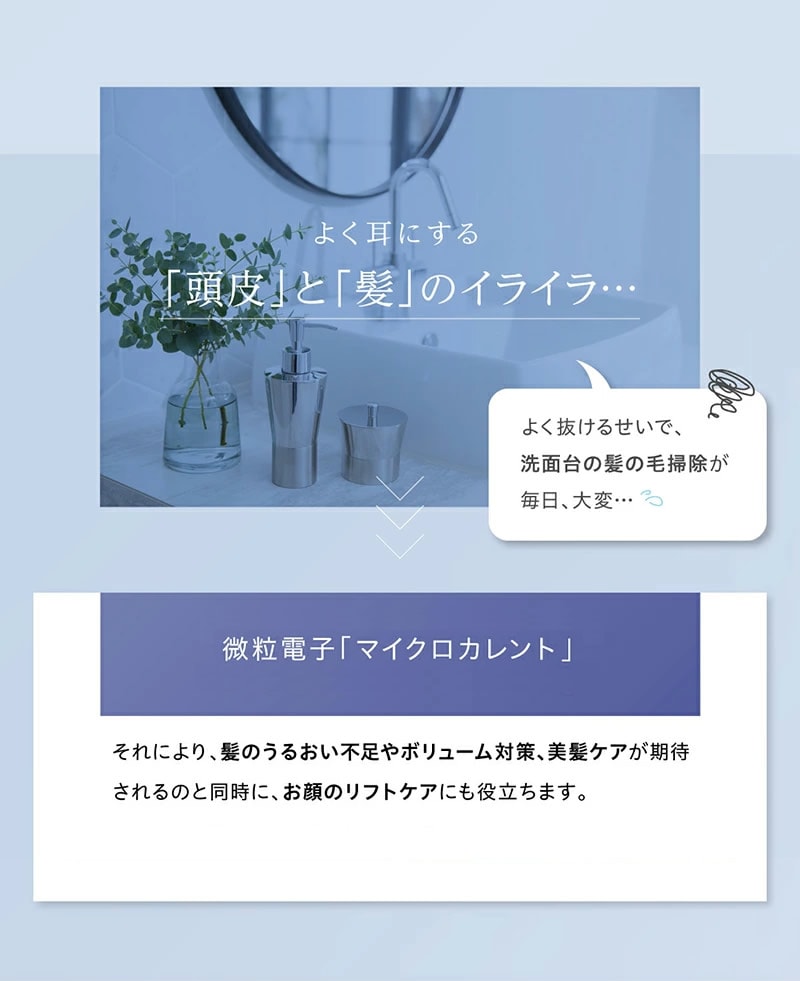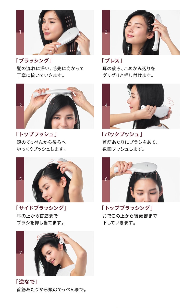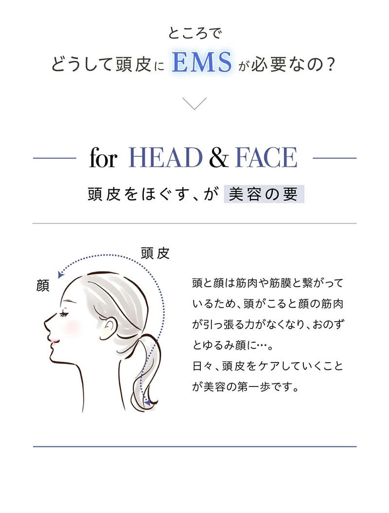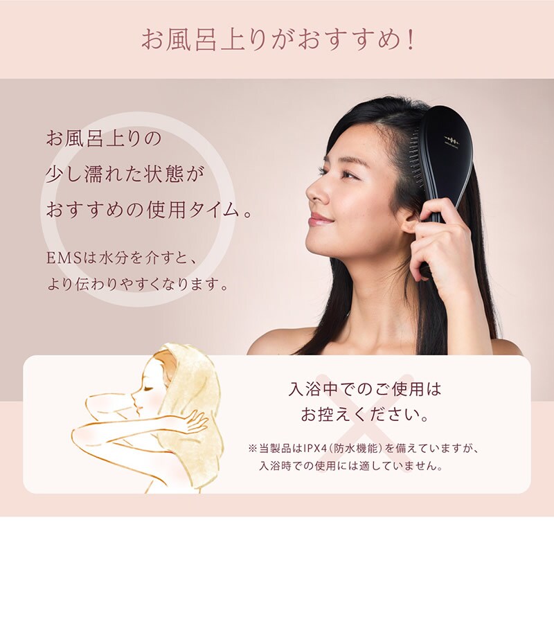 従来のブラシや電気ブラシと異なり、クッションの柔軟性があるため、頭皮を傷めず、やさしくEMSを伝えます。
