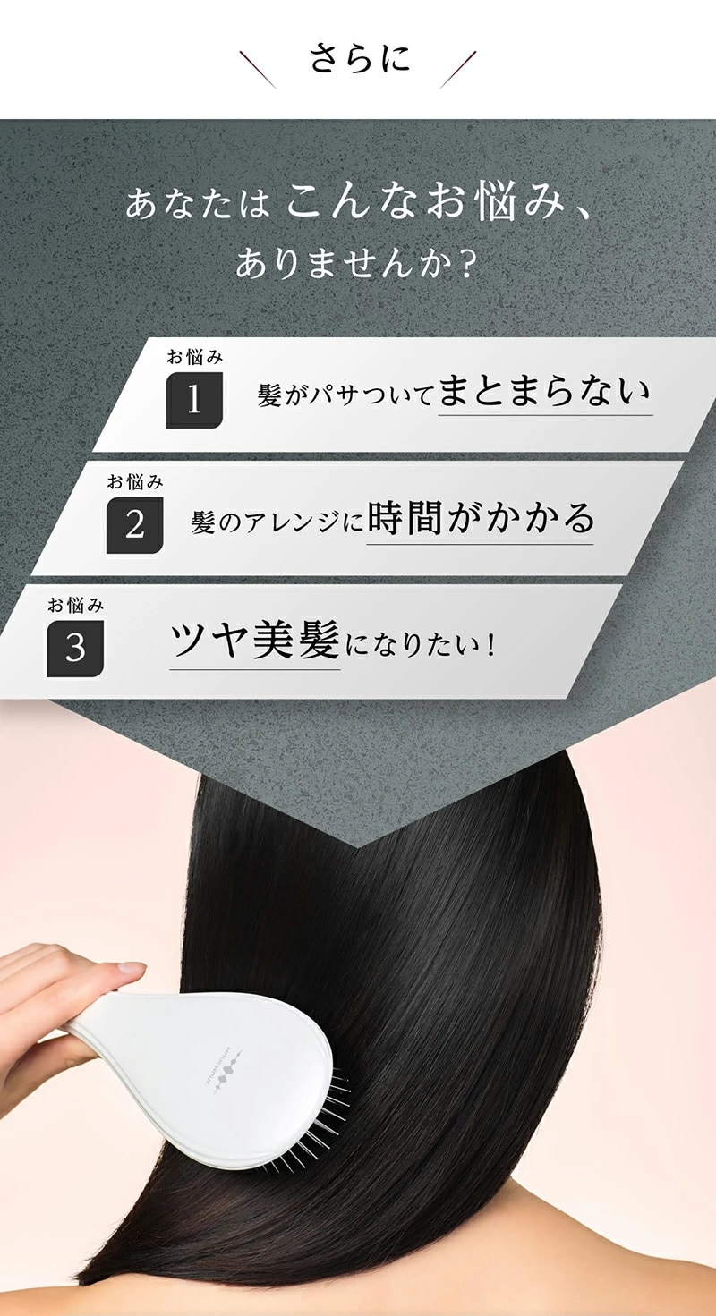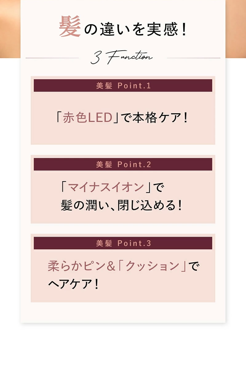 ブラシから放出されるのマイナスイオンがキューティクルに潤いを与え、そのままキープ。