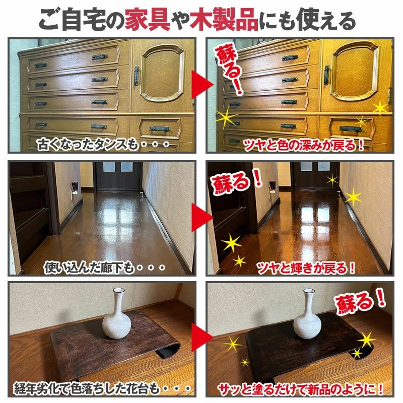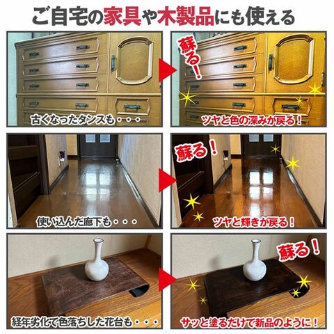・フローリングだけでなく、古くなったご自宅の木製品や木製家具にもお使い頂けます。(家具などは未塗装品を除く)