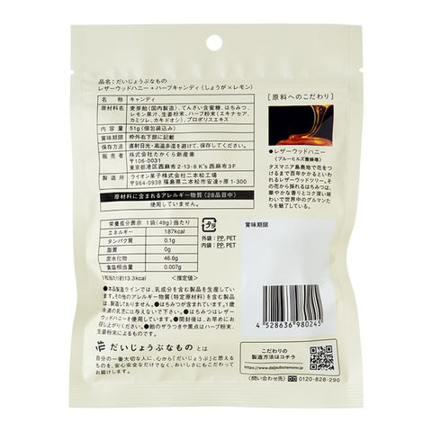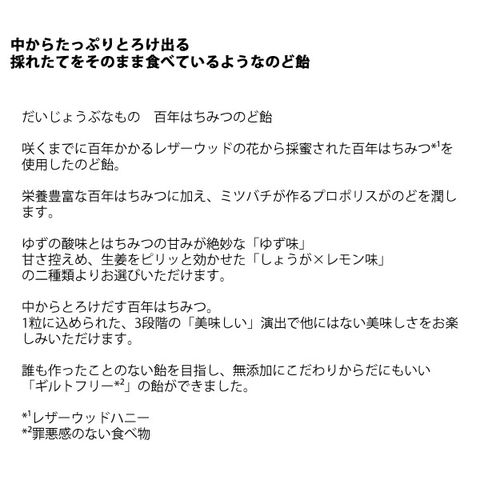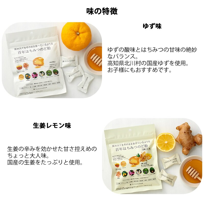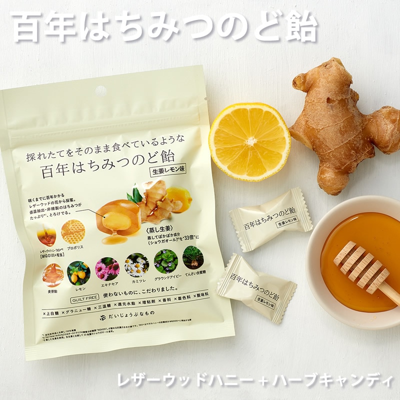 だいじょうぶなもの 百年はちみつのど飴 ゆず味/生姜レモン味 (レザーウッドハニー + ハーブキャンディ) のど飴 レザーウッドハニー ハーブキャンディ