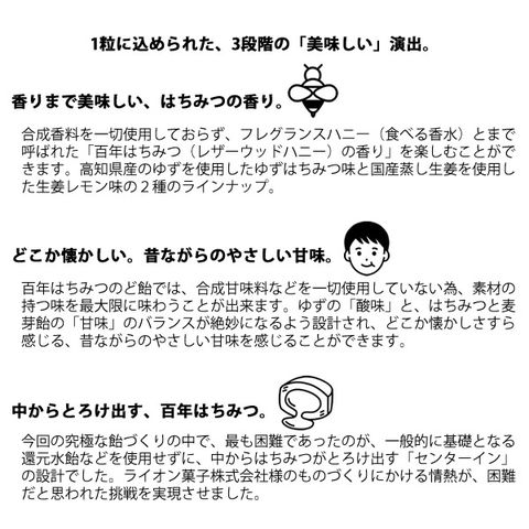 「美味しくないと、いくら原料にこだわっても喜んでもらえない」という想いから、原料などにこだわるのと同じように、美味しさにもこだわり、大人から子供まで美味しいと言ってもらえる飴を目指しました。