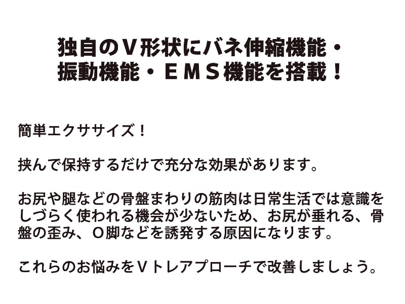 独自のV形状にバネ伸縮機能・振動機能・EMS機能を搭載!
