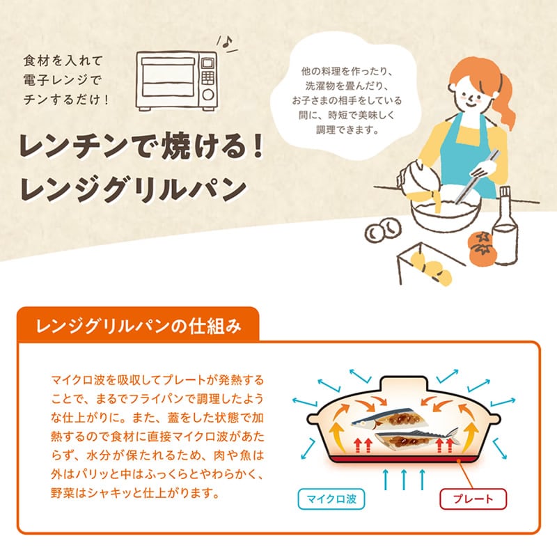 レンジグリルパン 電子レンジ 調理器具 電子レンジ用調理器 焼き魚 お肉 煮物 炊飯 餃子 焼き目 時短 人気 キッチン アイテム