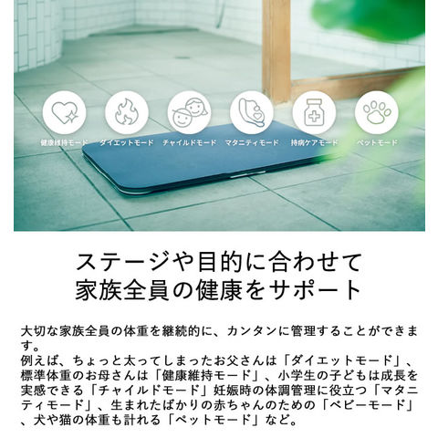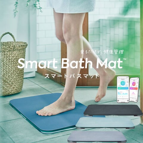 お風呂上がりに、いつもの要領でバスマットに乗るだけで体重測定ができ、自動的にスマホアプリに記録されます。