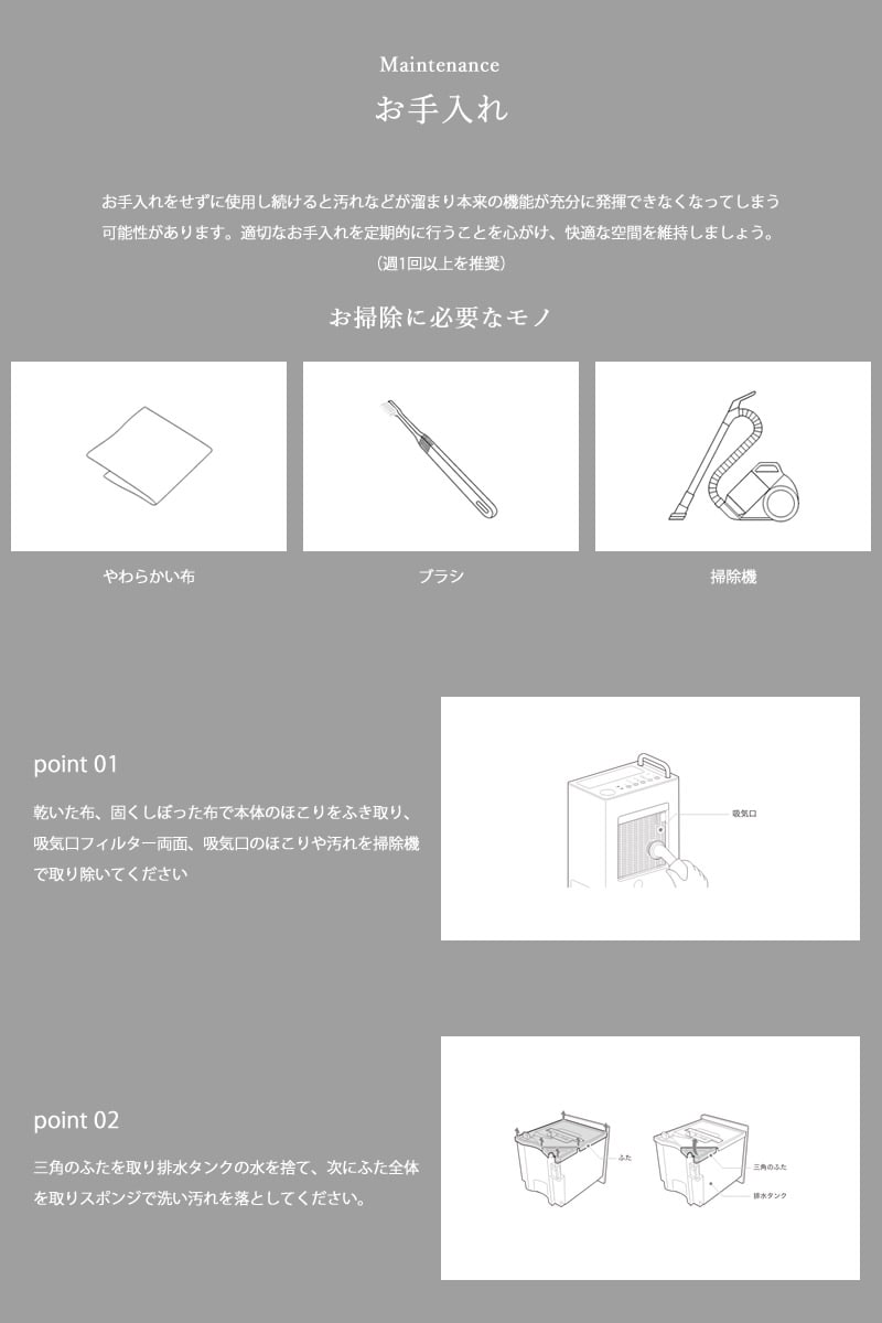 適切なお手入れを定期的に行うことを心がけ、快適な空間を維持しましょう。(週1回以上を推奨)