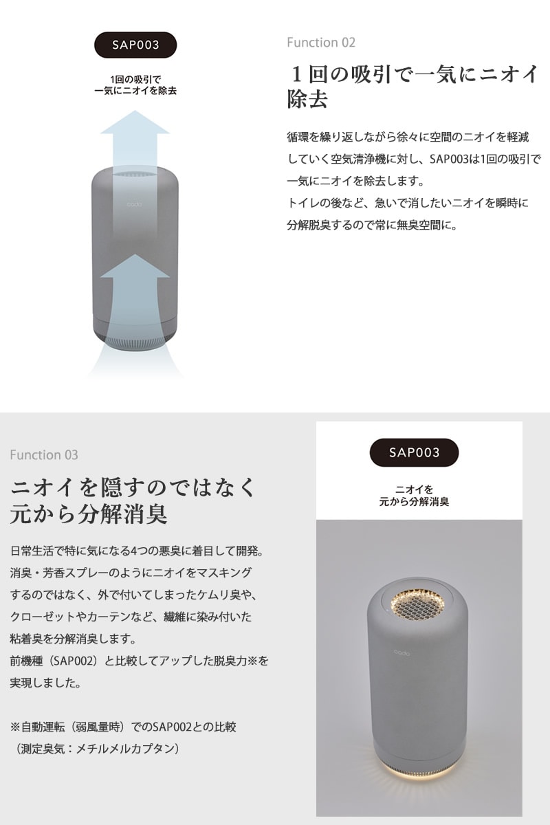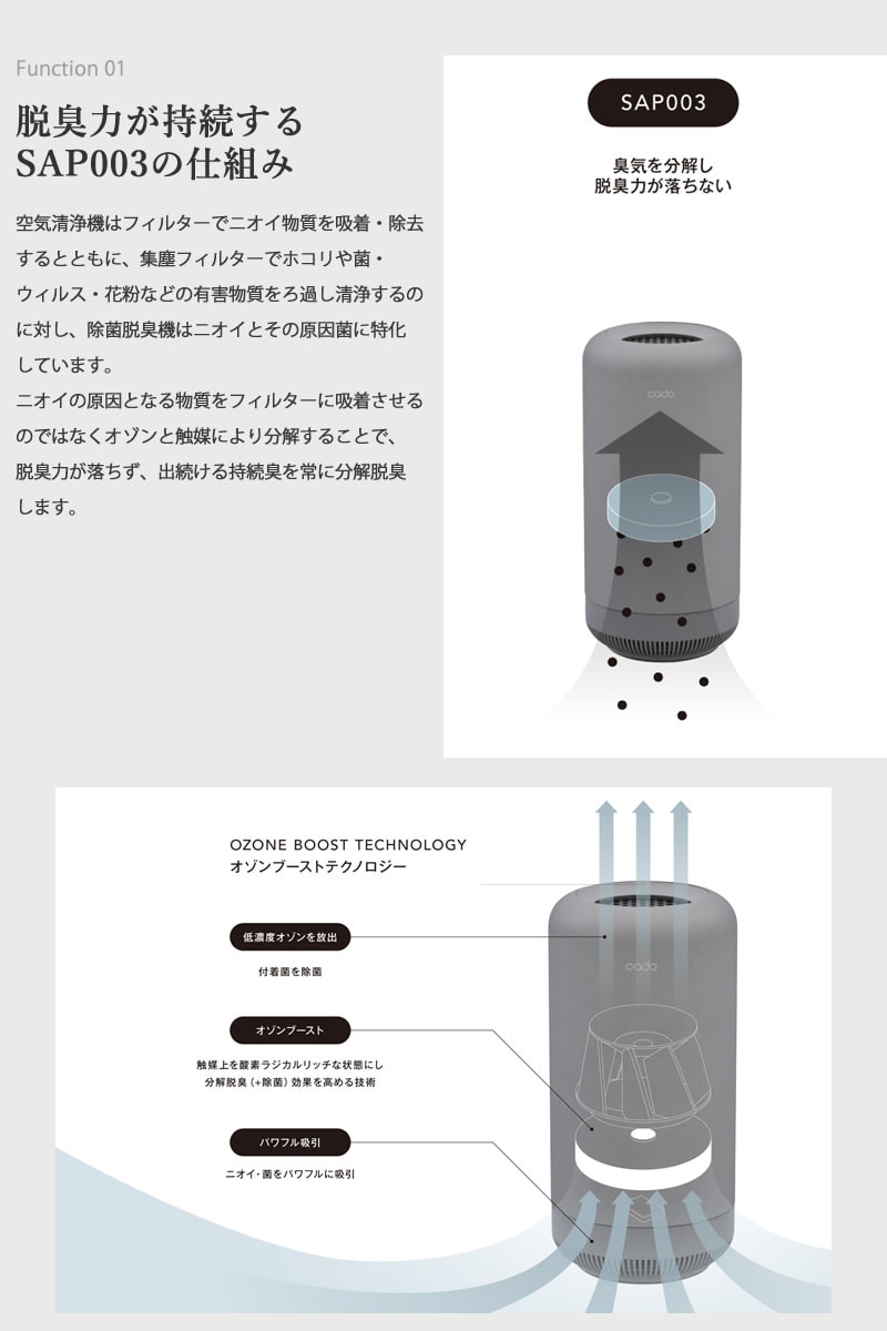 cado カドー 除菌脱臭機 SAP-003 脱臭機 オゾン 消臭 ペット ニオイ 玄関 トイレ 生活臭 花粉対策 介護 カビ臭 生ごみ 下駄箱 タバコ キッチン リビング