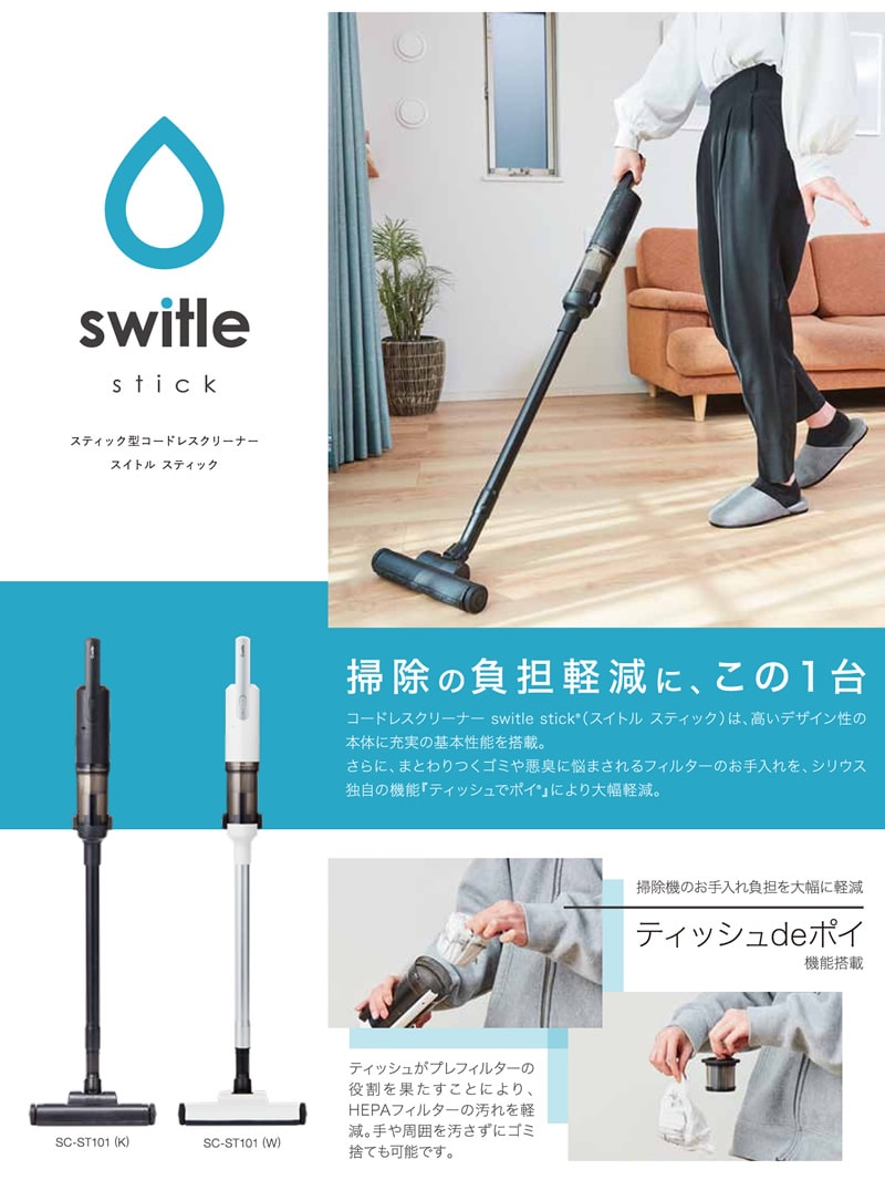 シリウス スティック型掃除機 スイトル スティック switle stick SC-ST101 掃除機 コードレス クリーナー ハンディクリーナー スティック型 軽量 スタンド付き