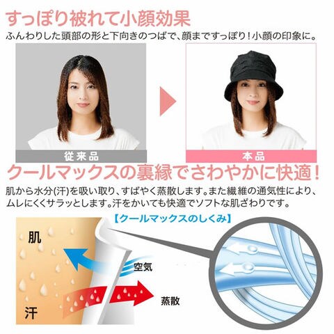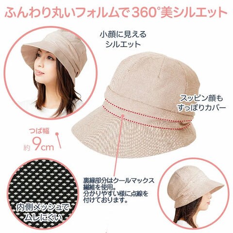 ふんわりした頭部の形と約9cmの下向きのつばで、顔全体をすっぽりカバーで小顔効果も!ブラックとベージュの2色展開です。