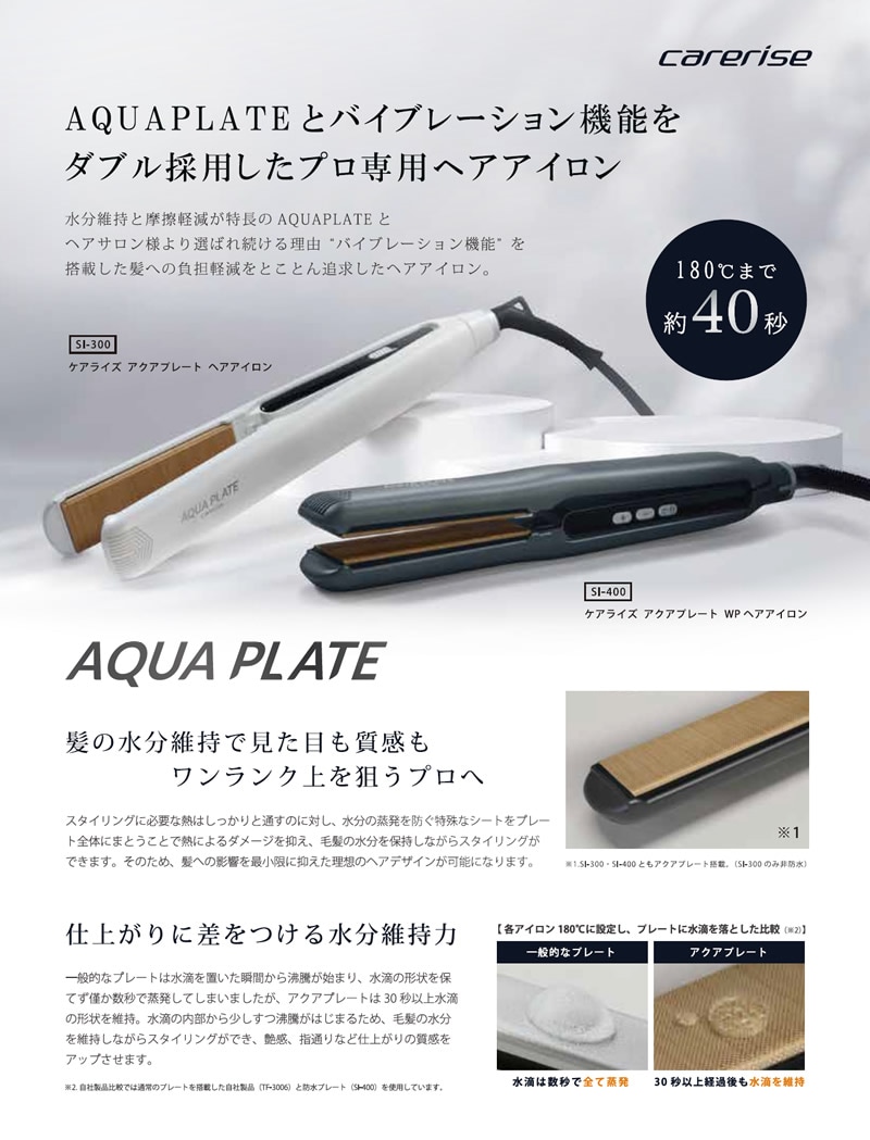 ケアライズ アクアプレート ヘアアイロン SI-300 日本製 ストレート カール ウェーブ ヘアサロン タッピング 軽量 薄型