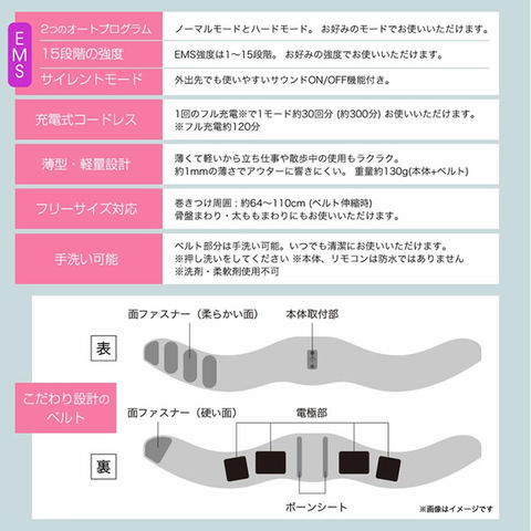 適応サイズ:巻きつけ周囲/約64~110cm ※ベルト伸縮時