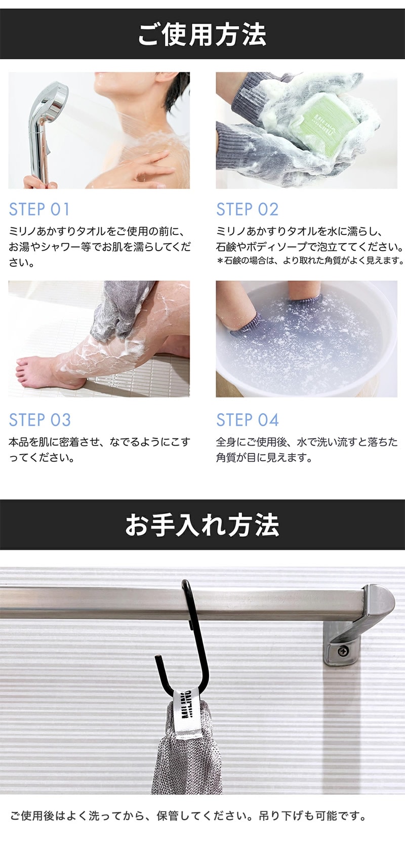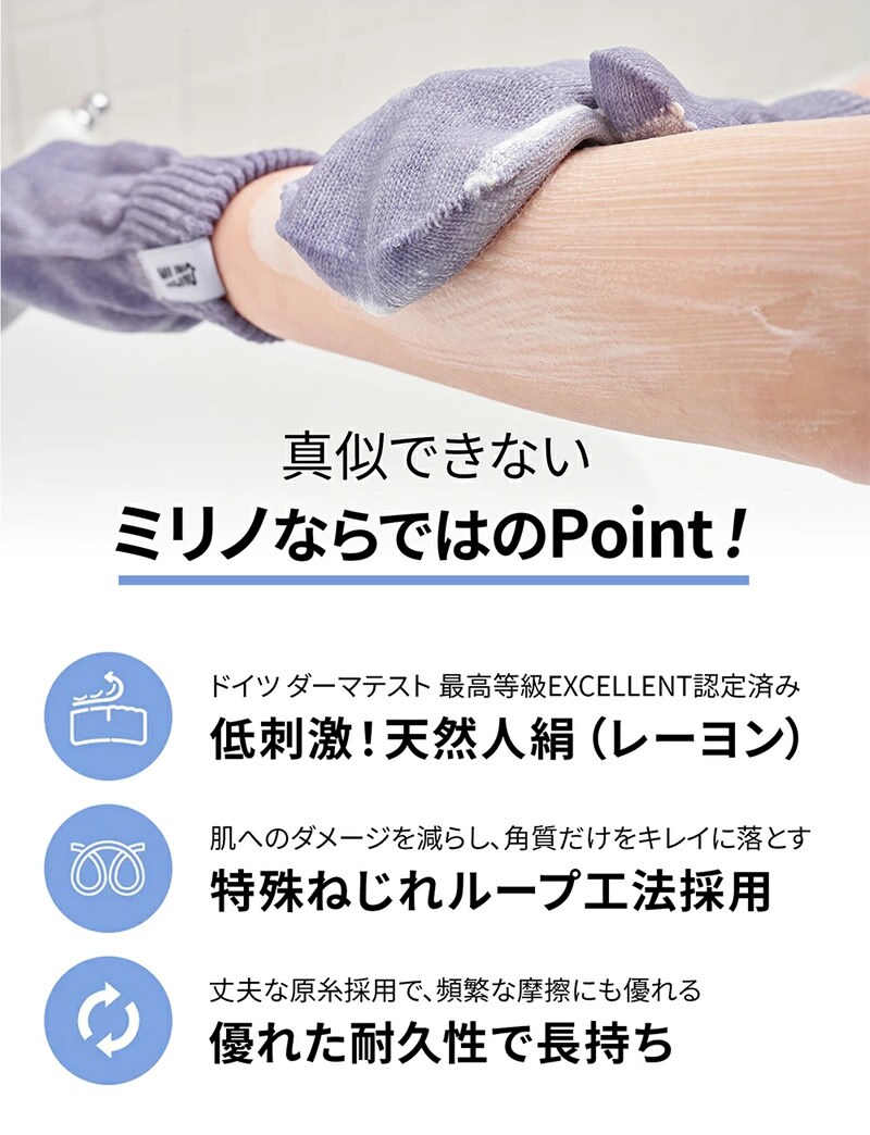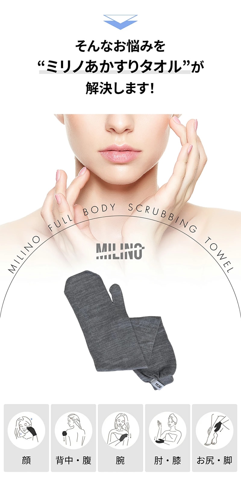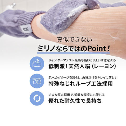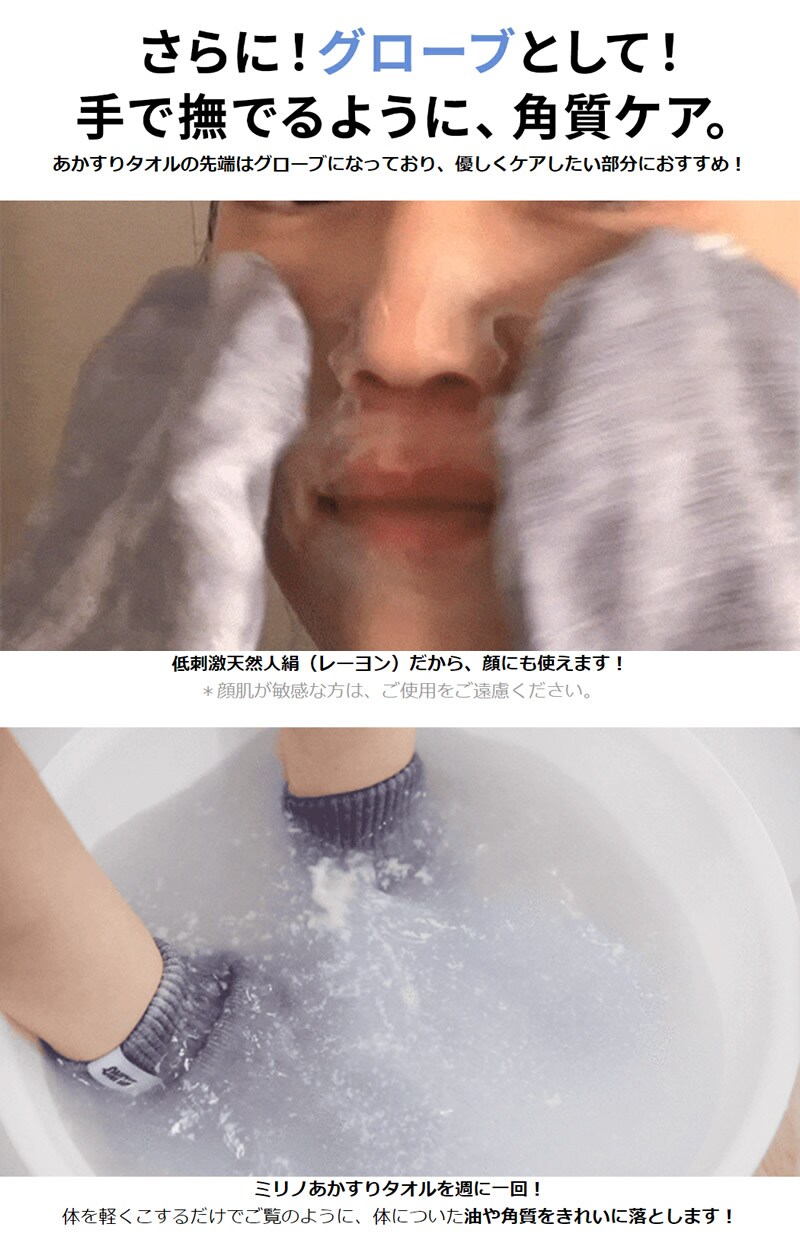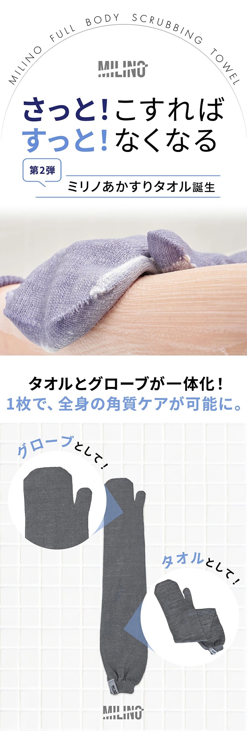 ミリノ あかすりタオル 垢すり タオル 角質 汚れ お風呂 美容 バスグッズ あかすり 低刺激 グローブ かかと 二の腕 MILINO