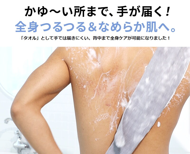 タオルとして手では届きにくい、背中まで全身ケアが可能になりました!