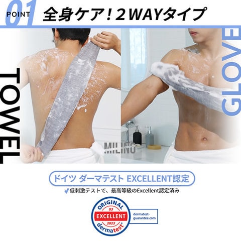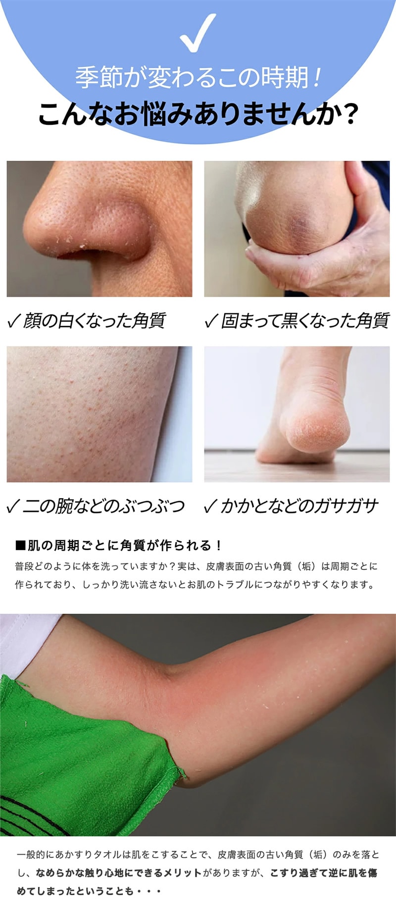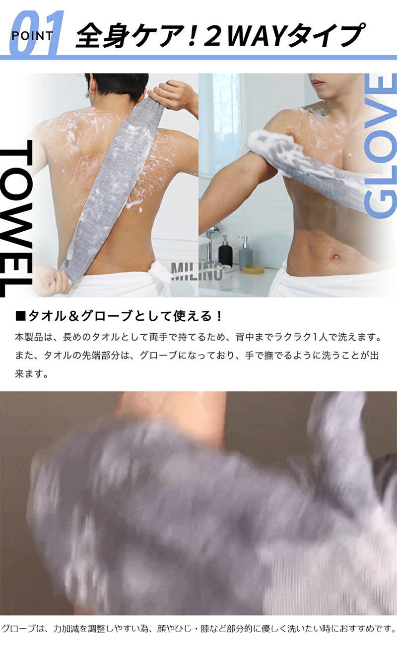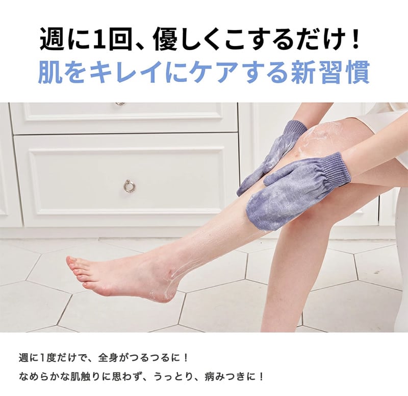 タオルとグローブが一体化!1枚で、全身の角質ケアが可能に。