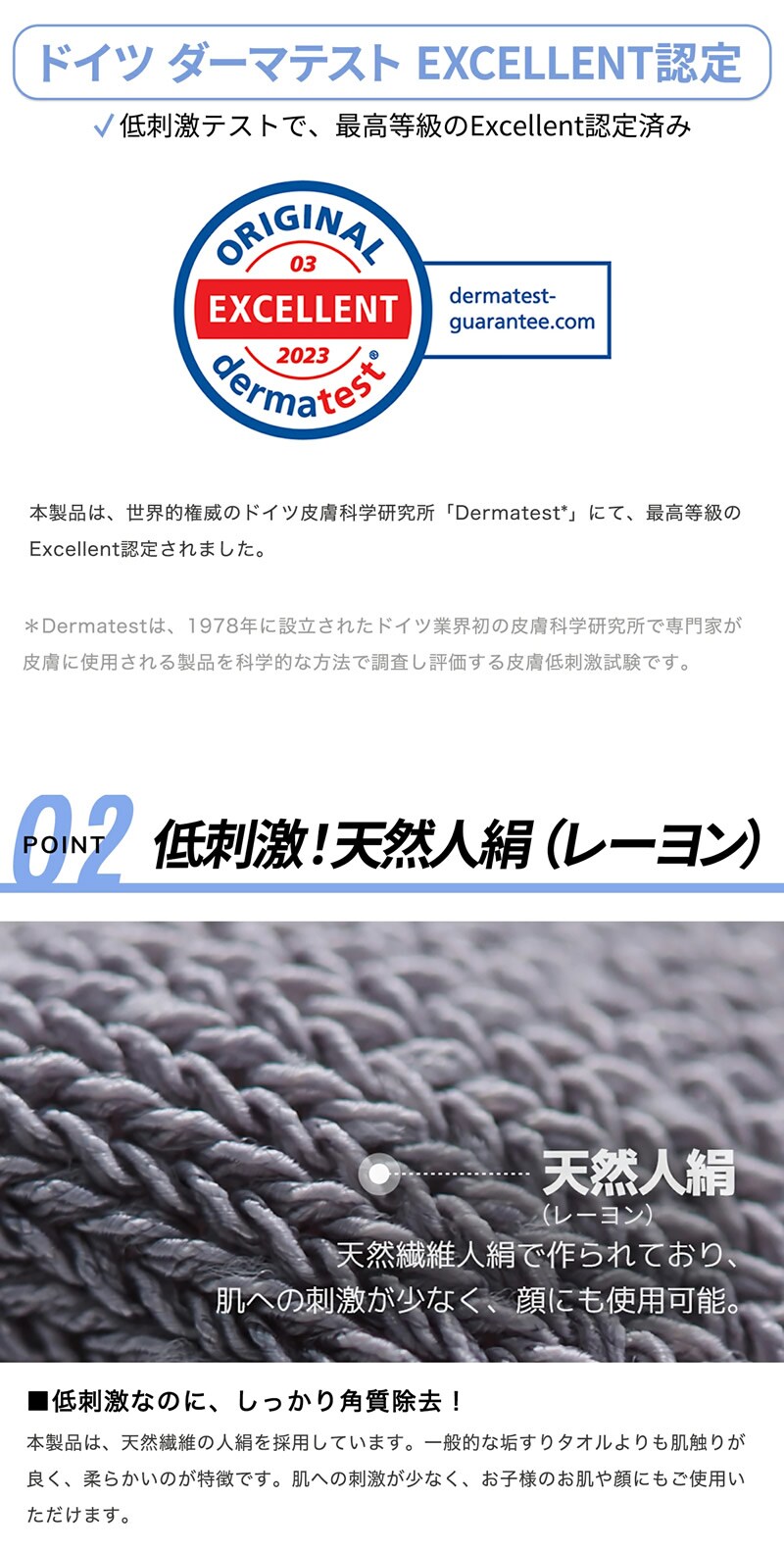 低刺激天然人絹(レーヨン)だから、顔にも使えます!