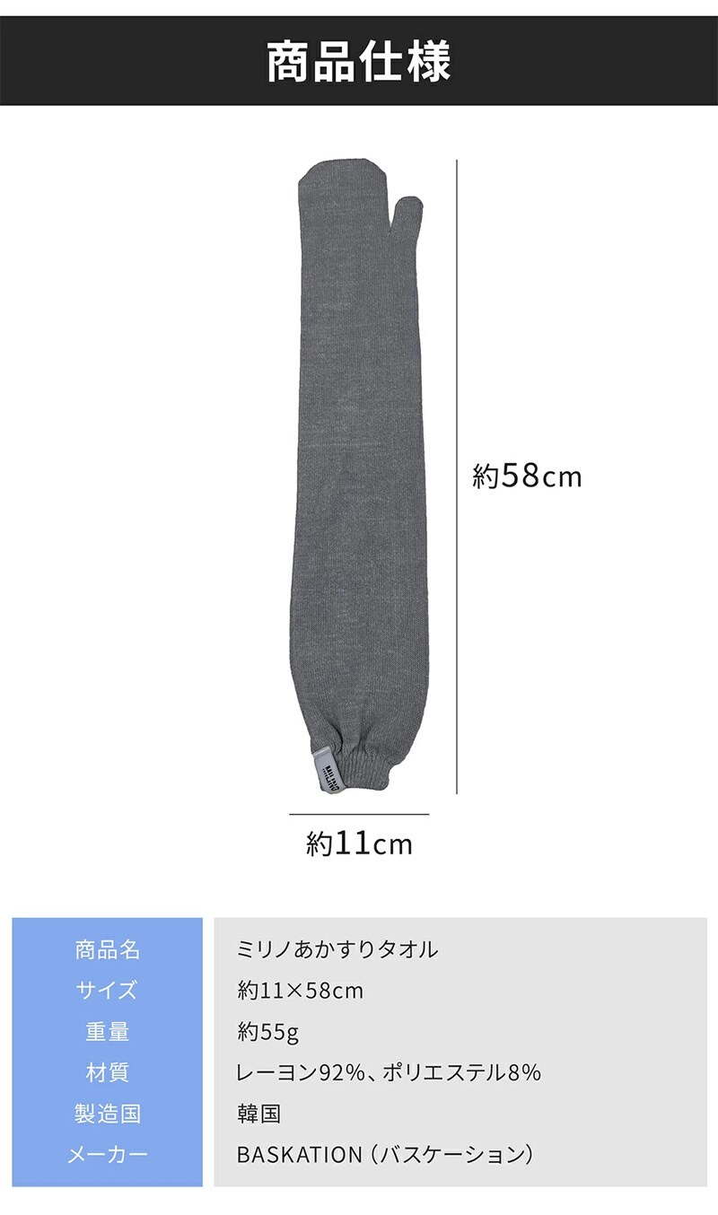あかすりタオルの先端はグローブになっており、優しくケアしたい部分におすすめ!