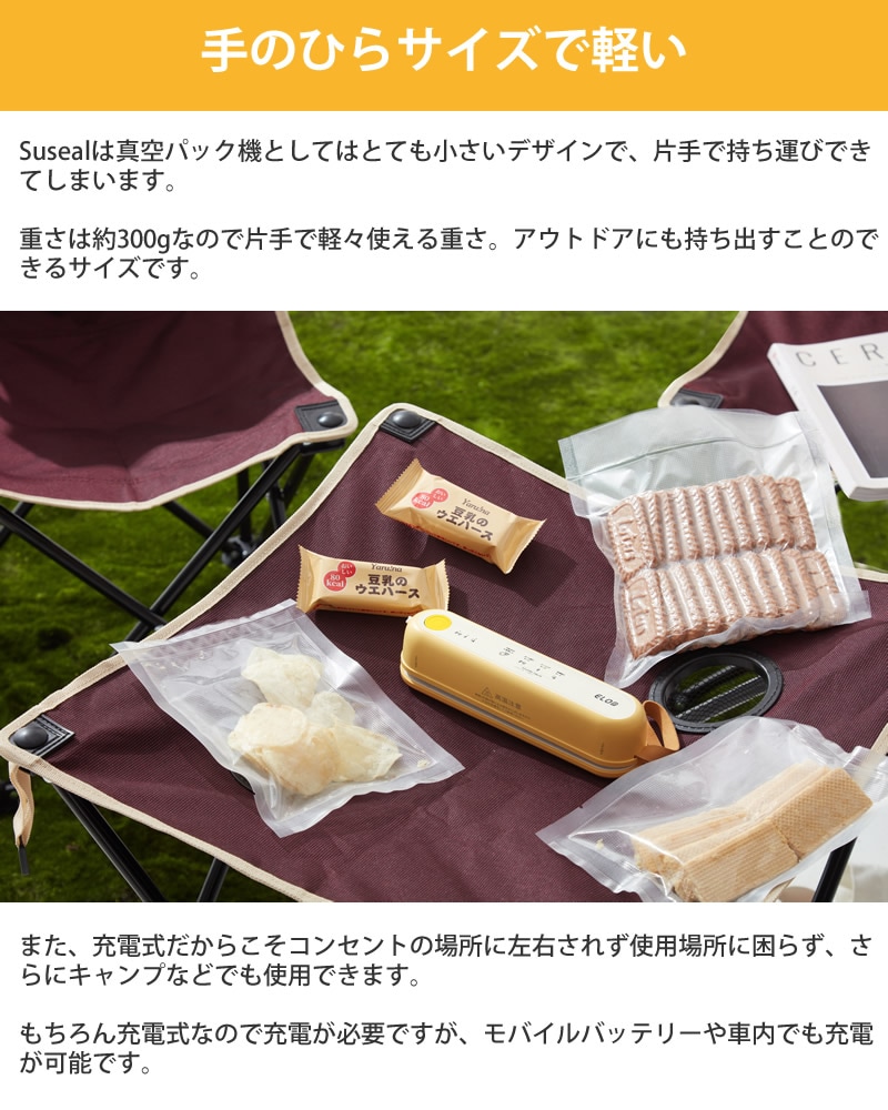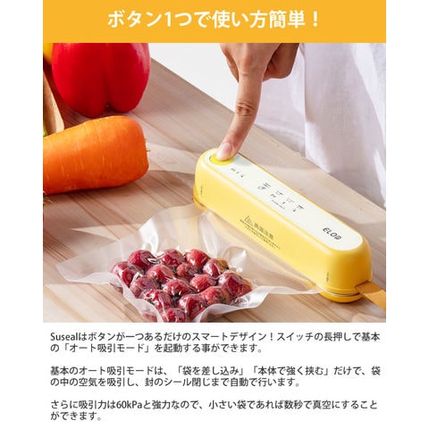 充電式 真空パック機 Suseal スシール 真空パック機 真空 シーラー 食品保存 ポータブル シーリング 家庭用 手のひらサイズ 脱気シーラー コンパクト ギフト