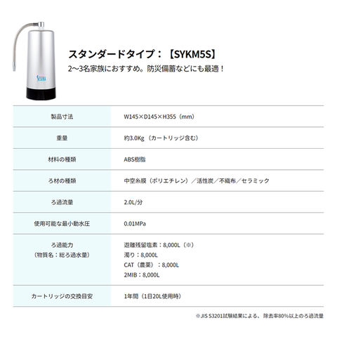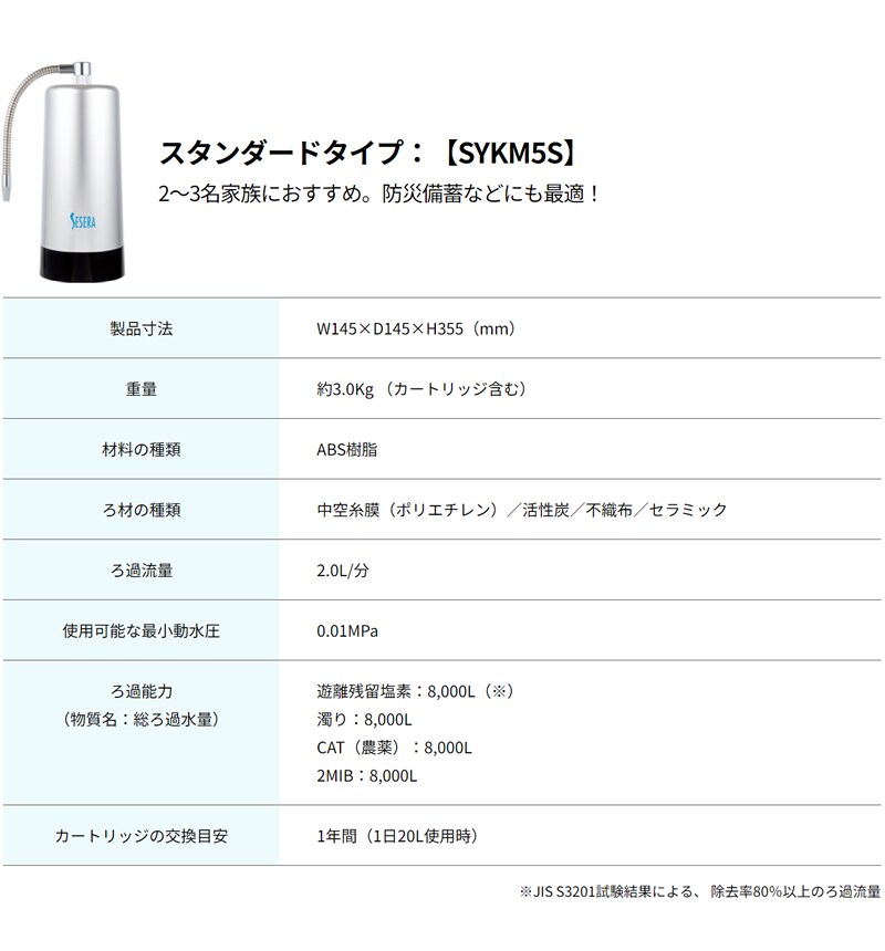 サイテックス フェーズフリー浄水器 SESERA せせら スタンダードタイプ SYKM5S 浄水器 防災用浄水器 日本製 濾過器 災害 飲料水 高性能浄水器