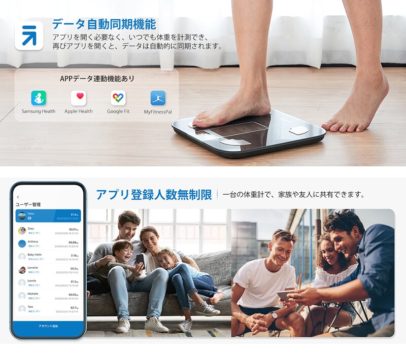 家族で一緒に使うなど、1台を複数人で共有してもプロフィールとデータは個別に記録できます。