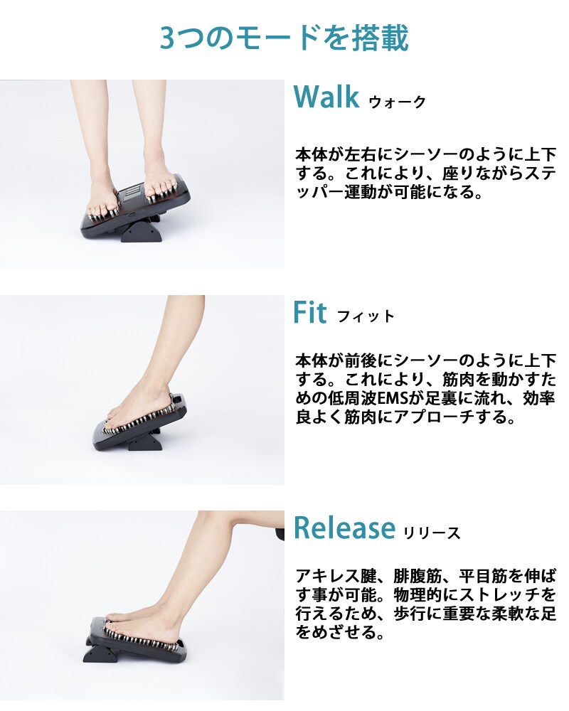 歩くために大切な足裏や前脛、ふくらはぎの筋肉を座っているだけで効率よく刺激します。