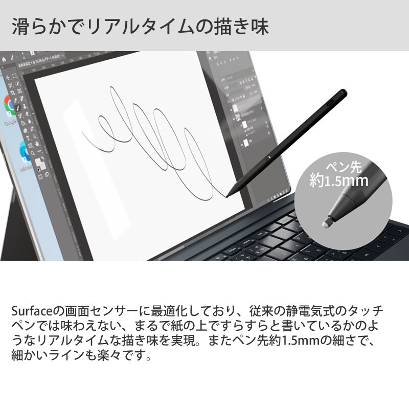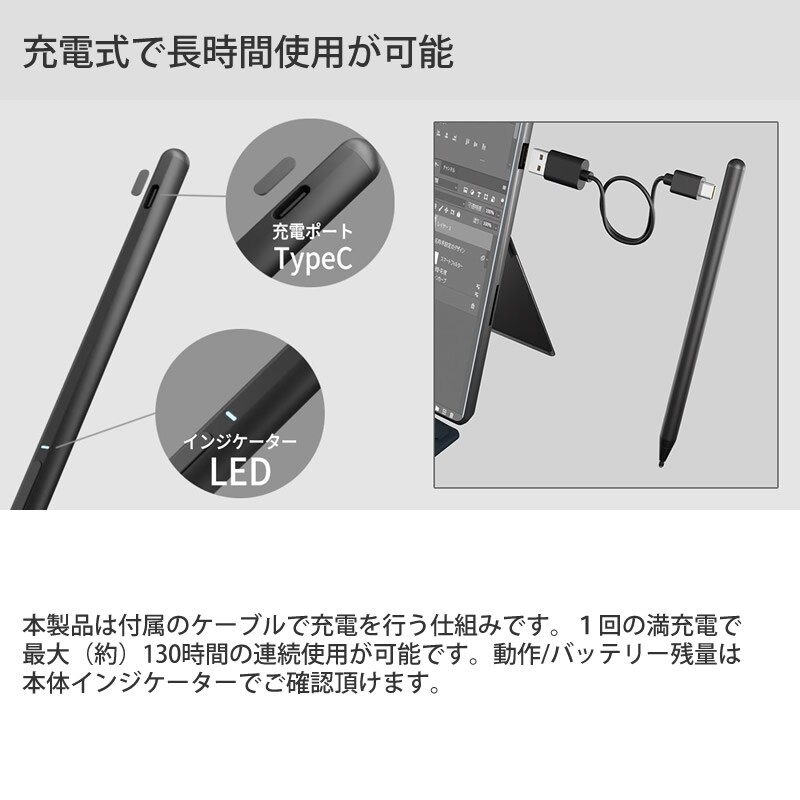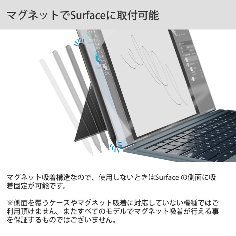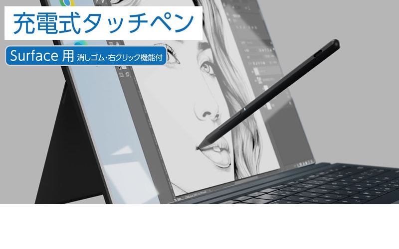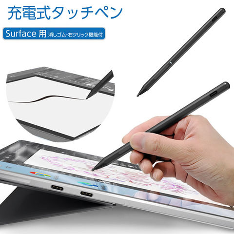 エアリア Surface 専用充電式タッチペン SD-SFTP03 タッチペン 消しゴム 右クリック機能 パームリジェクション対応 充電式 長時間使用