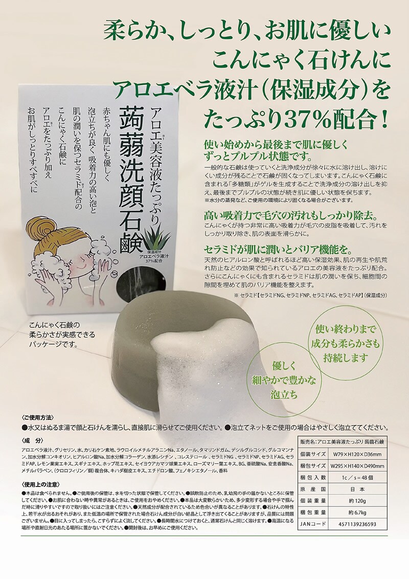商品名:アロエ美容液たっぷり 蒟蒻洗顔石鹸