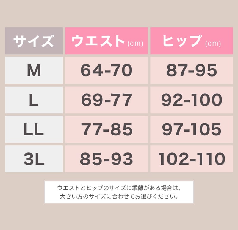 3Lサイズ ウエスト 85~93cm/ヒップ 102~110cm
